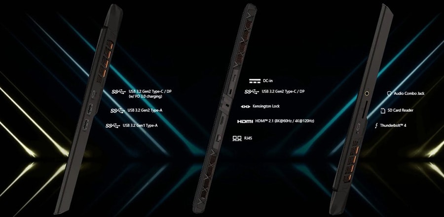 Vector 17 HX eksiksiz G/Ç portları ile tüm veri ve görüntü iletme yöntemlerini destekler. Bu sayede oyunculara laptoplarını kullanırken maksimum esneklik sunar.
