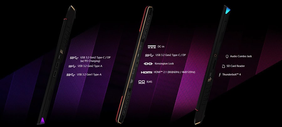 Raider GE78 HX 14V eksiksiz G/Ç portları ile tüm veri ve görüntü iletme yöntemlerini destekler. Bu sayede oyunculara laptoplarını kullanırken maksimum esneklik sunar.