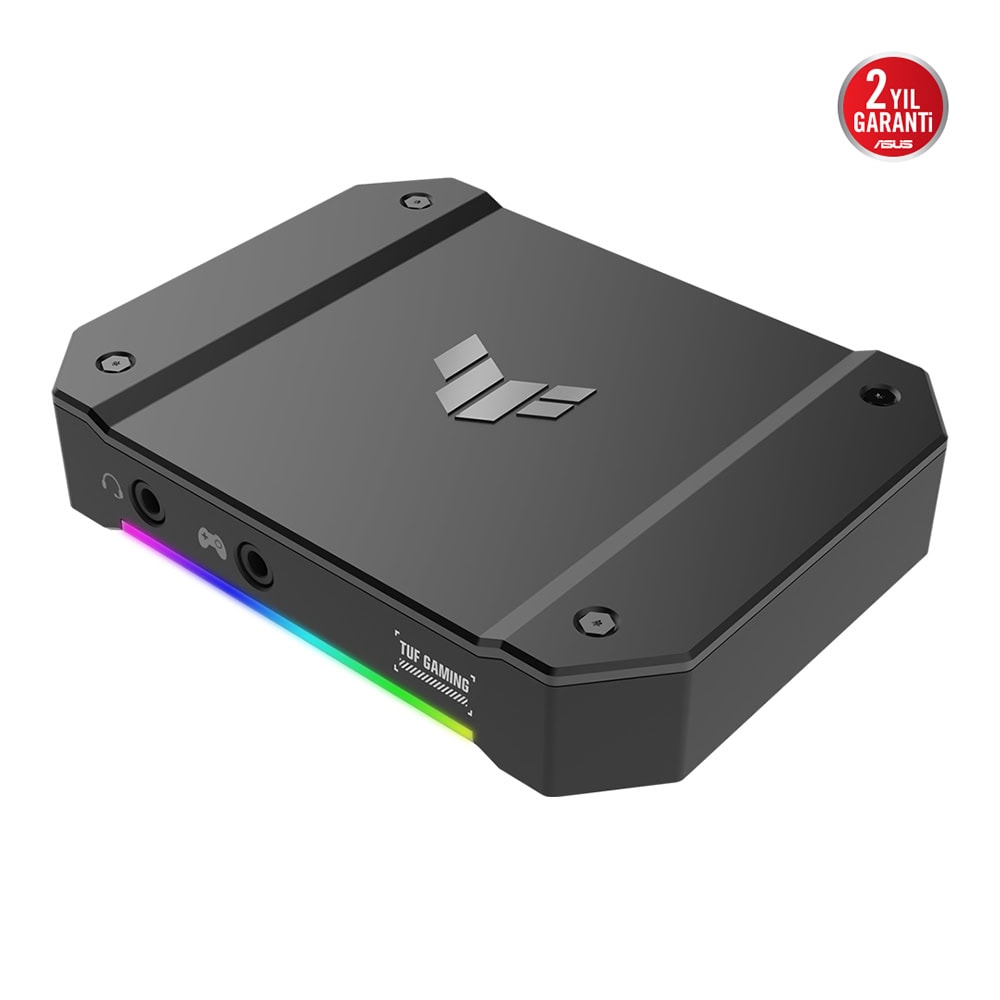 ASUS TUF GAMING CAPTUE BOX-4KPRO’nun ön tarafı, çalışma durumunu belirten kullanışlı bir ARGB aydınlatma şeridiyle ışıklandırıldı.