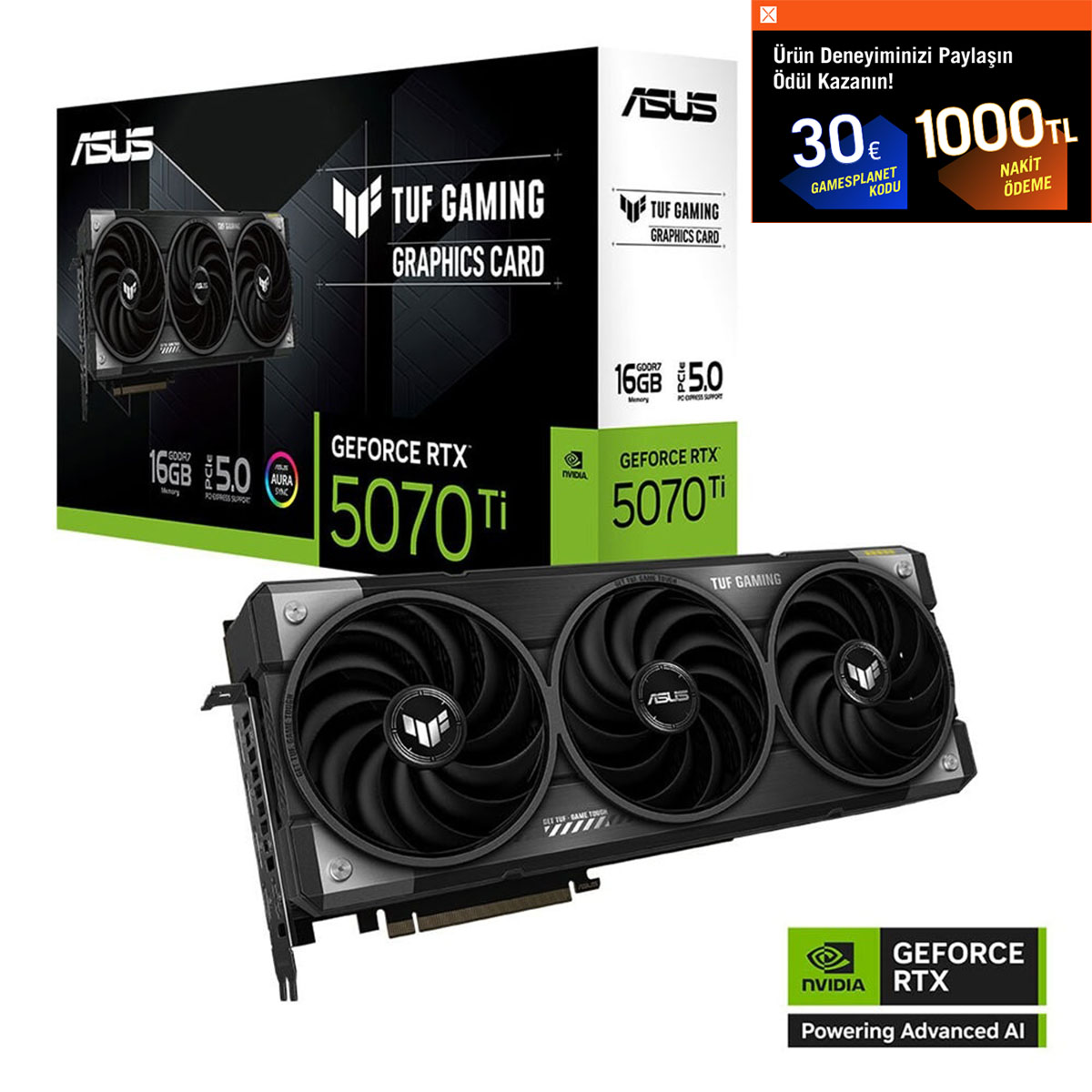 ASUS TUF Gaming GeForce RTX 5070 Ti 16GB GDDR7 256 Bit DLSS 4 Ekran Kartı – PRAGMATA Hediyeli
