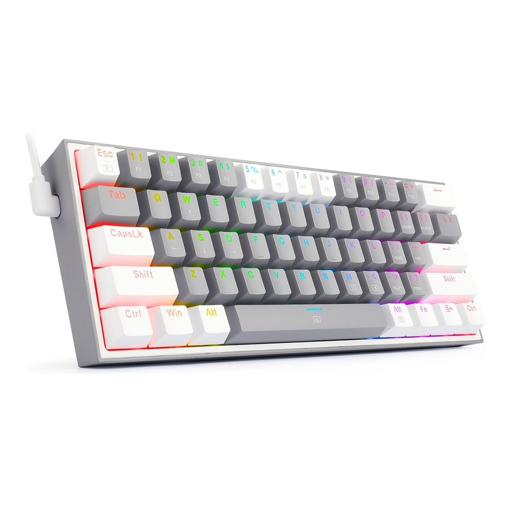 Redragon 60% klavye, kablolu modda ve 2 renkli karışık tuş kapakları düzeniyle. Ultra kompakt 61 tuşlu ve yenilikçi tuş kapağı rengiyle, canlı unsurlarla değerli masa alanını boşaltır.