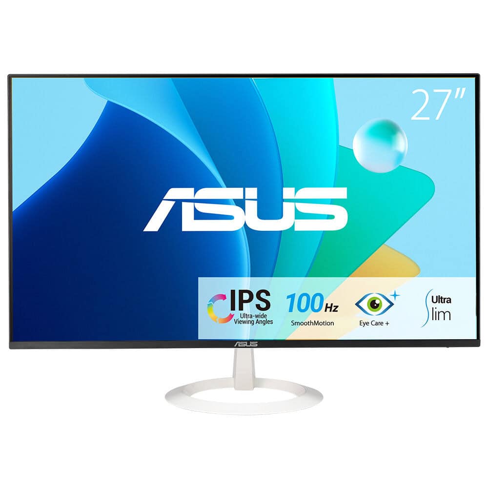 ASUS VZ27EHF-W Eye Care Monitörü – 27 inç Full HD (1920 x 1080), IPS, Çerçevesiz, 100Hz, Adaptive-Sync, 1ms MPRT, HDMI, Düşük Mavi Işık, Flicker Free ve Duvar Montaj Özelliği