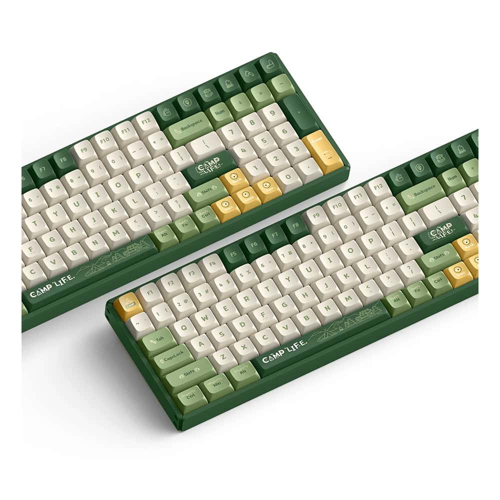 IQUNIX F97 Kamp Kablosuz Mekanik Klavye, üstün performans ve taşınabilirliği doğadaki maceralardan ilham alan bir tasarımla birleştiriyor. Çam yeşili tuş başlıkları ve canlı turuncu vurgular, kamp ve macera ruhunu yakalıyor. Renk şeması, yaşam tarzlarına uygun donanım arayan açık hava ve teknoloji meraklıları arasında güçlü bir yankı uyandırıyor. Gürültülü şehir hayatından uzakta, doğada yeniden yavaş ve rahat bir yaşam tarzı edinin. Kamp temalı klavyeye hafifçe dokunarak huzursuz kalbimin derinliklerindeki eğlenceli hücreleri serbest bırakıyorum. Birlikte vahşileşelim ve tüm yorgunluğu üzerimizden atalım!