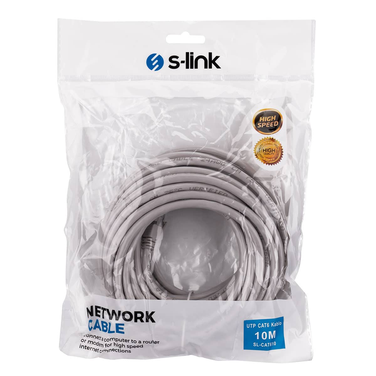 S-Link SL-CAT610 Ethernet kablosu, 10 metrelik uzunluğu sayesinde modem, bilgisayar ve diğer ağ cihazları arasında geniş mesafelerde güçlü bağlantı imkânı sunar. Cat6 standardıyla yüksek hızda veri aktarımı ve düşük gecikme sağlayarak, ev ve ofis kullanımında stabil internet deneyimi yaşatır. Dayanıklı gri tasarımı ile uzun ömürlü kullanım için idealdir.
