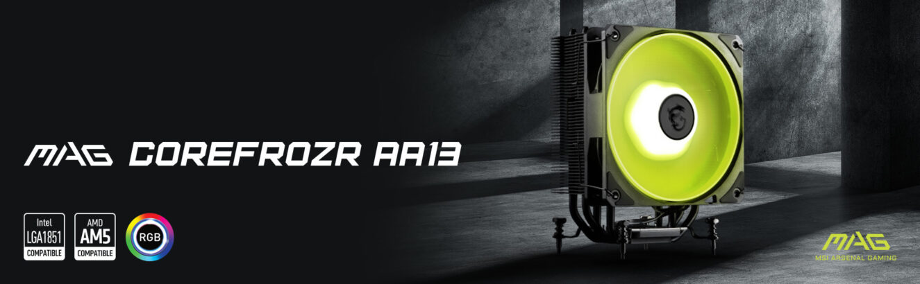 MSI MAG COREFROZR AA13, anaakım ve performans PC’leri için ideal bir single-tower hava soğutma çözümüdür. 4 adet 6mm yüksek verimli heatpipe ve 120mm CYCLOBLADE 7 fandan oluşan AA13, güçlü ve kararlı bir soğutma performansı sunar. Yalnızca 152 mm’lik kompakt yüksekliği ile birçok kasa ile uyumludur. En yeni Intel LGA 1700/1851 ve AMD AM4/AM5 soket tipleri ile uyumludur.