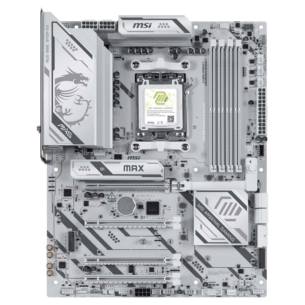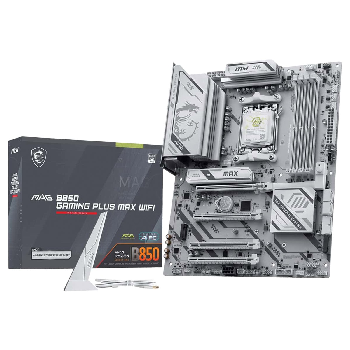 MAG B850 GAMING PLUS MAX WIFI, 12 Duet Rail güç sistemi ve AMD Ryzen 9000 / 8000 / 7000 serisi masaüstü işlemcileri destekleyen en yeni AMD B850 yongasetine sahip bir oyun anakartıdır. PCIe 5.0, 5G LAN, Wi-Fi 7 ve DDR5 desteği ile birinci sınıf donanımı uygun fiyatla buluşturur.