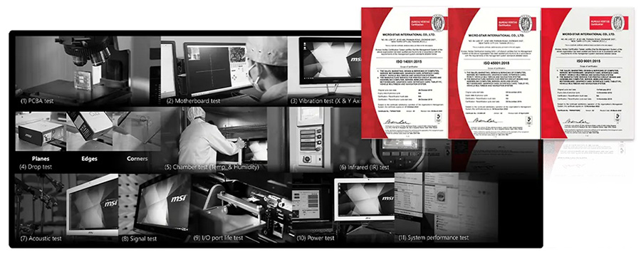 MIL-STD-1916 testleri sayesinde MSI ürünlerinin yüksek performans standartlarını karşıladıkları garantilenir. Böylece her zaman güvenilir bir profesyonel deneyimi yaşayacağınızı garantiler.