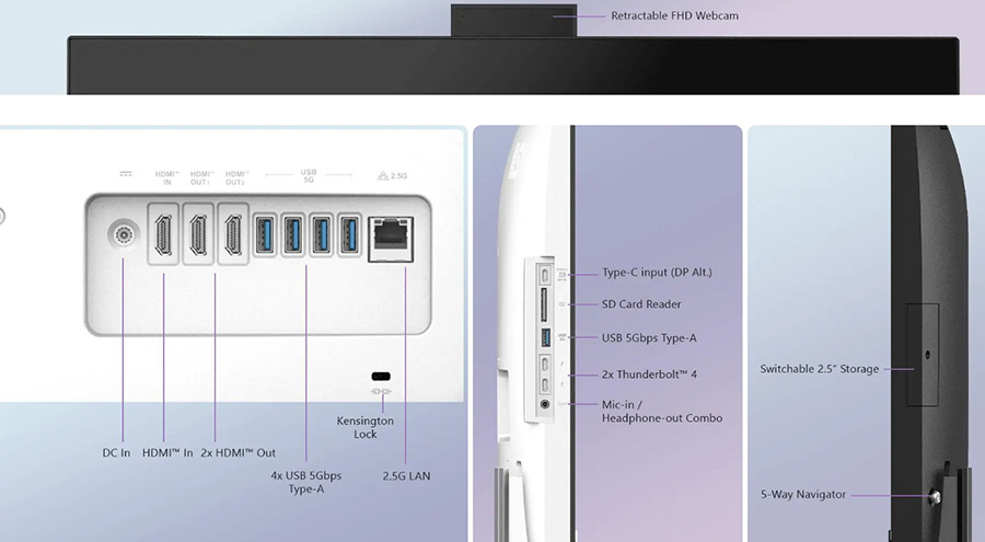 Modern AM273Q AI serisi, DP desteği sunan Type-C portu ve bir HDMI™ girişine sahiptir. MSI Instant Display teknolojisi sayesinde bu portlara bir cihaz bağlandığında ekran otomatik olarak açılır. Bu sayede sistemi açmaya gerek olmadan ekranınız harici bir monitör olarak çalışır.