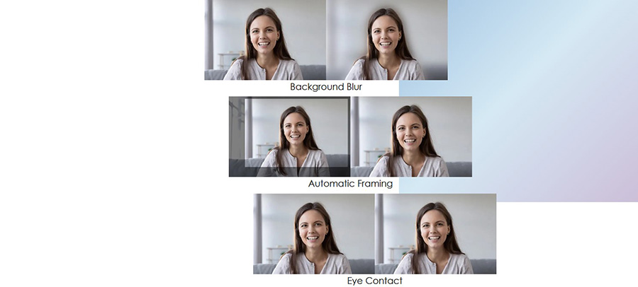 Profesyonel ve ilgi çekici bir görüntülü görüşme için arkaplan efektleri, göz teması düzeltmesi, otomatik çerçeveleme ve ses odaklama gibi özelliklerle videolarınızı AI desteğiyle geliştirin.