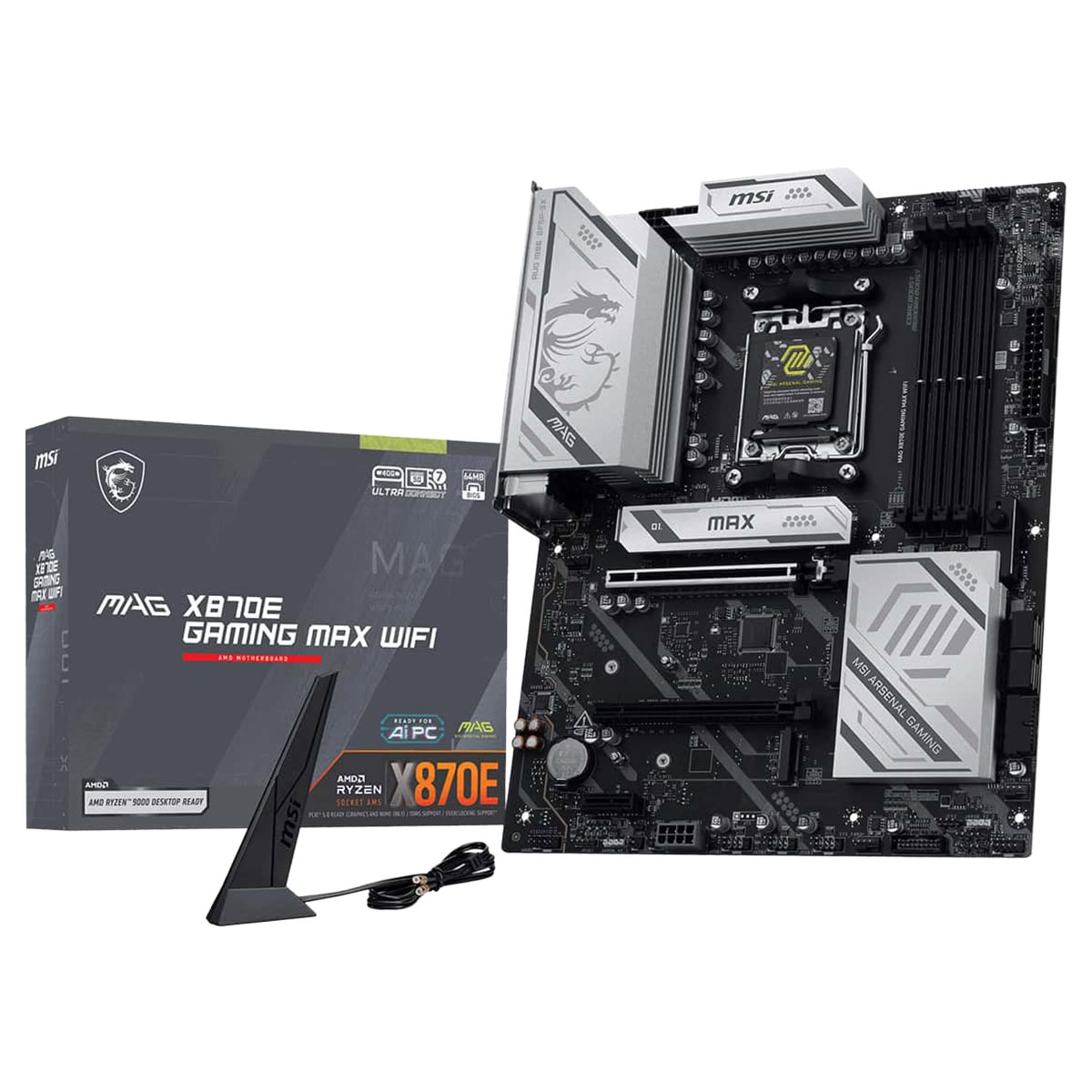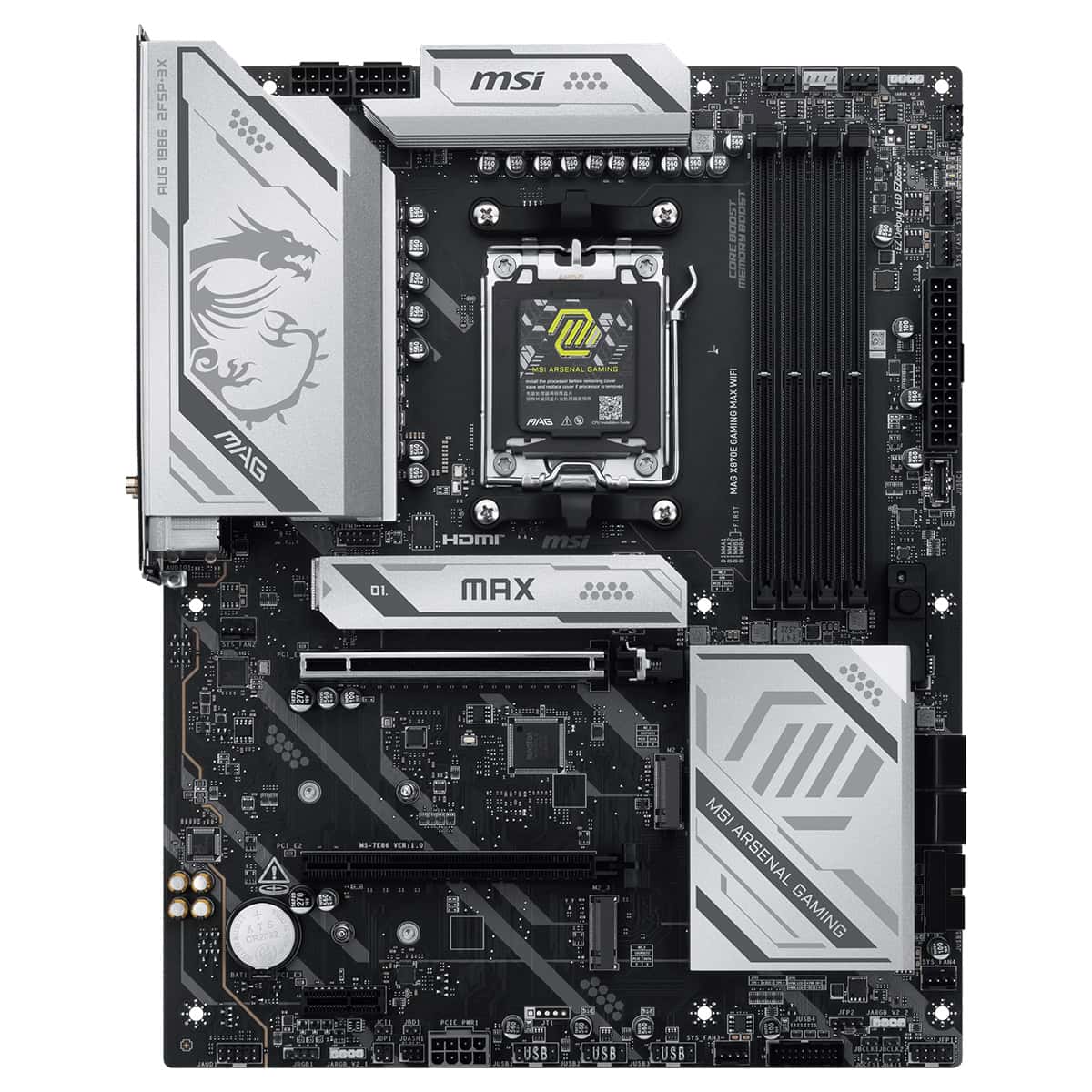 MAG X870E GAMING MAX WIFI, en yeni AMD X870E yongasetine sahip, AMD Ryzen 9000 / 8000 / 7000 serisi masaüstü işlemcileri destekleyen oyun odaklı bir ATX anakarttır. Wi-Fi 7, 5G LAN, PCIe 5.0 ve DDR5 bellek desteği ile mükemmel bir donanım/fiyat dengesine sahiptir.