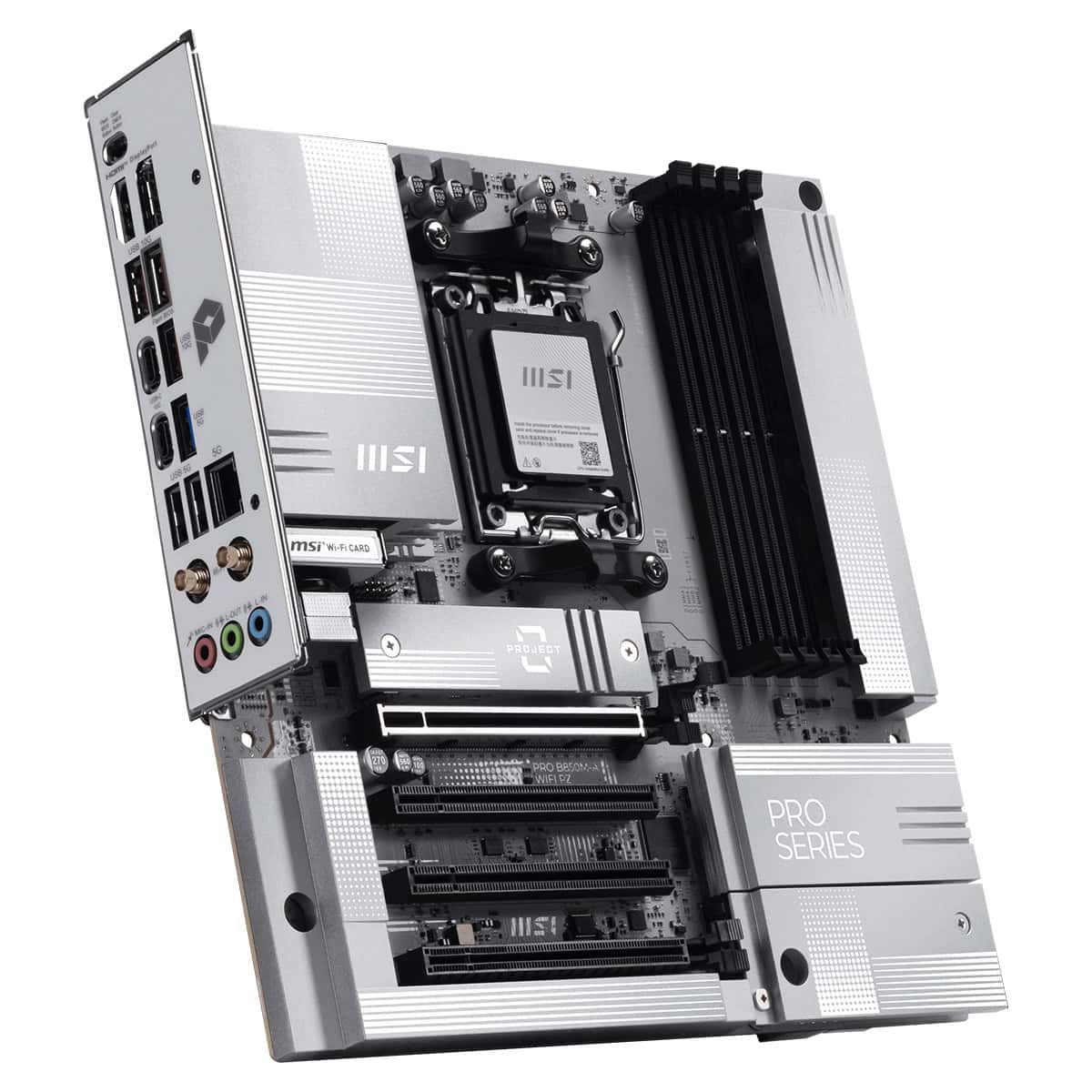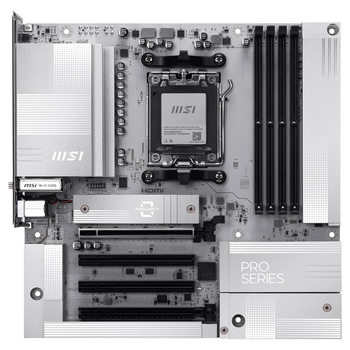 PRO B850M-A WIFI PZ, temiz bir ön görünüm ve kolay kablo yönetimi sağlayan arka bağlantı tasarımına sahip, yaratıcılığa yönelik bir Micro-ATX anakarttır. AMD Ryzen 9000 / 8000 / 7000 serisi masaüstü işlemcileri destekleyen en yeni AMD B850 yonga setiyle üretilen PRO B850M-A WIFI PZ, PCIe 5.0, 5G LAN, Wi-Fi 7, DDR5 ve Frozr tasarımıyla hem en son teknoloji hem de yenilikçi donanımları destekler.