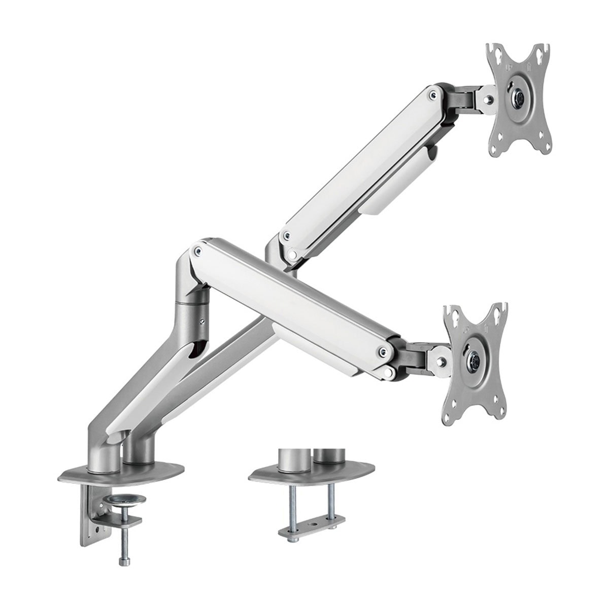 Brateck 17-32 inç Uyumlu İki Kollu Amortisörlü Gümüş Monitör Kolu (LDT63-C024)